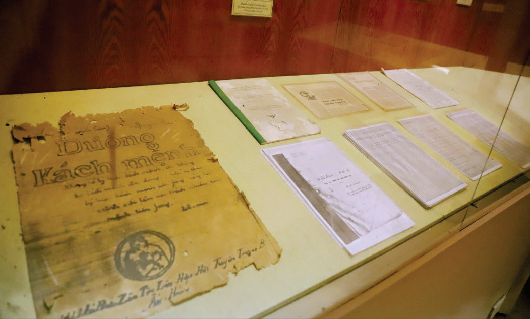 Sách báo, tài liệu liên quan hoạt động cách mạng do đồng chí Trần Phú soạn thảo được bảo quản kỹ càng.