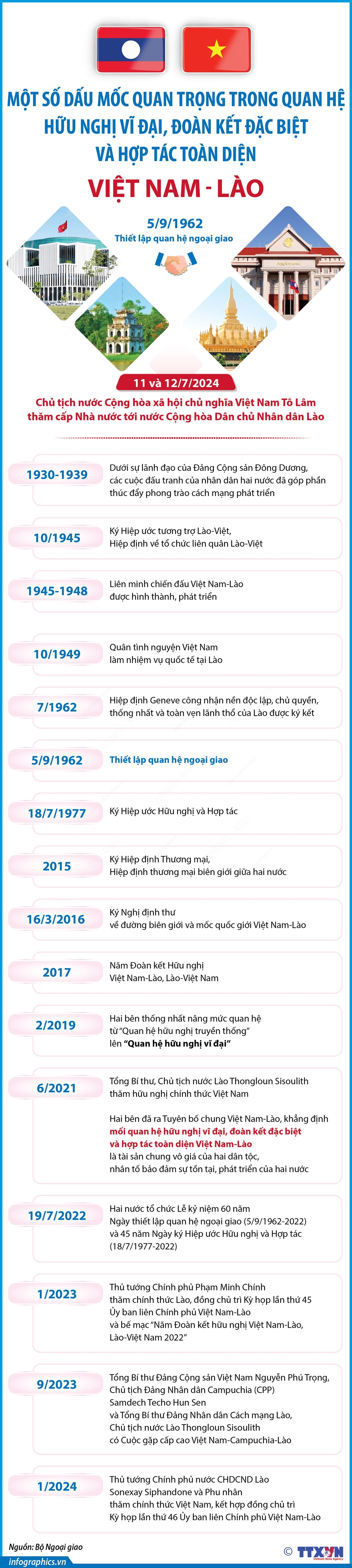 Một số dấu mốc quan trọng trong quan hệ hữu nghị vĩ đại, đoàn kết đặc biệt và hợp tác toàn diện Việt Nam - Lào