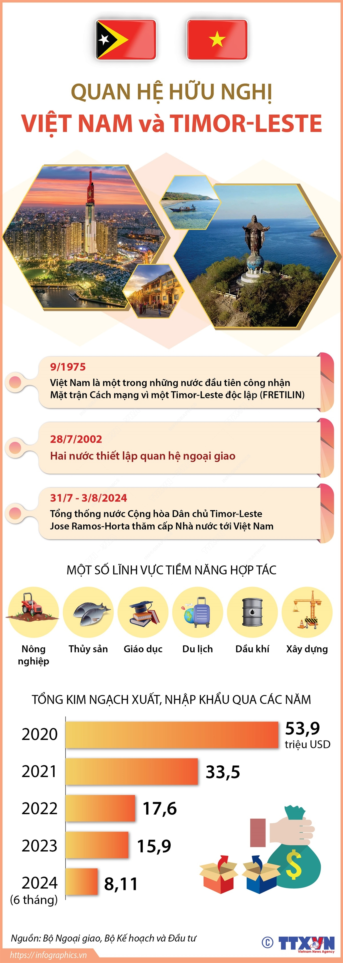 Nhận lời mời của Chủ tịch nước Cộng hoà xã hội chủ nghĩa Việt Nam Tô Lâm, Tổng thống nước Cộng hòa Dân chủ Timor-Leste Jose Ramos-Horta thăm cấp Nhà nước tới Việt Nam từ ngày 31/7 đến 3/8/2024. Đây là chuyến thăm tới Việt Nam lần thứ hai của Tổng thống Jose Ramos-Horta, diễn ra sau hơn 14 năm. Việt Nam và Timor-Leste có quan hệ hữu nghị lâu đời. Việt Nam là một trong những nước đầu tiên công nhận Mặt trận Cách mạng vì một Timor-Leste độc lập (FRETILIN) (9/1975)