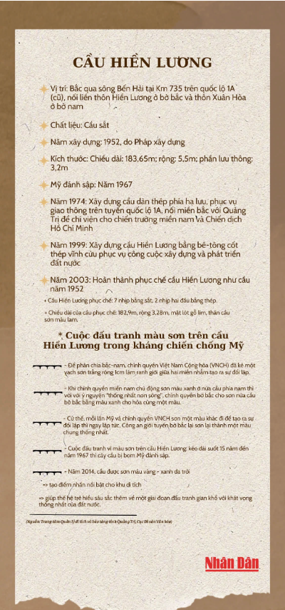 Sông Bến Hải - cầu Hiền Lương là nhân chứng lịch sử mang trên mình dấu ấn sự chia cắt bắc-nam trong hơn 20 năm. Ngày nay, sông Bến Hải - cầu Hiền Lương đã trở thành một di tích quốc gia đặc biệt và là một biểu tượng cho ý chí và khát vọng giành độc lập, tự do của dân tộc Việt Nam thiết tha yêu hòa bình.