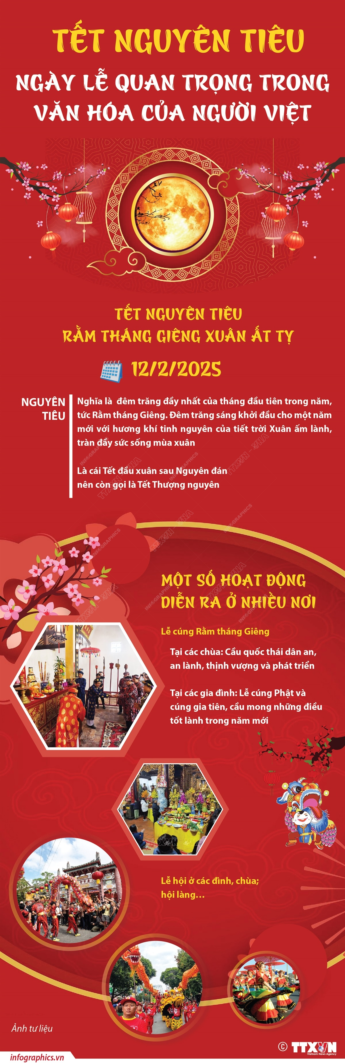 Rằm tháng Giêng hay còn gọi là Tết Nguyên tiêu là ngày chính rằm rất quan trọng trong đời sống tâm linh của người dân Việt Nam. Nguyên tiêu nghĩa là đêm trăng đầy nhất của tháng đầu tiên trong năm, tức rằm tháng Giêng. Đêm trăng sáng khởi đầu của một năm mới với hương khí tinh nguyên của tiết trời ấm lành, tràn đầy sức sống mùa xuân. Năm nay, Rằm tháng Giêng vào ngày 12/2/2025.