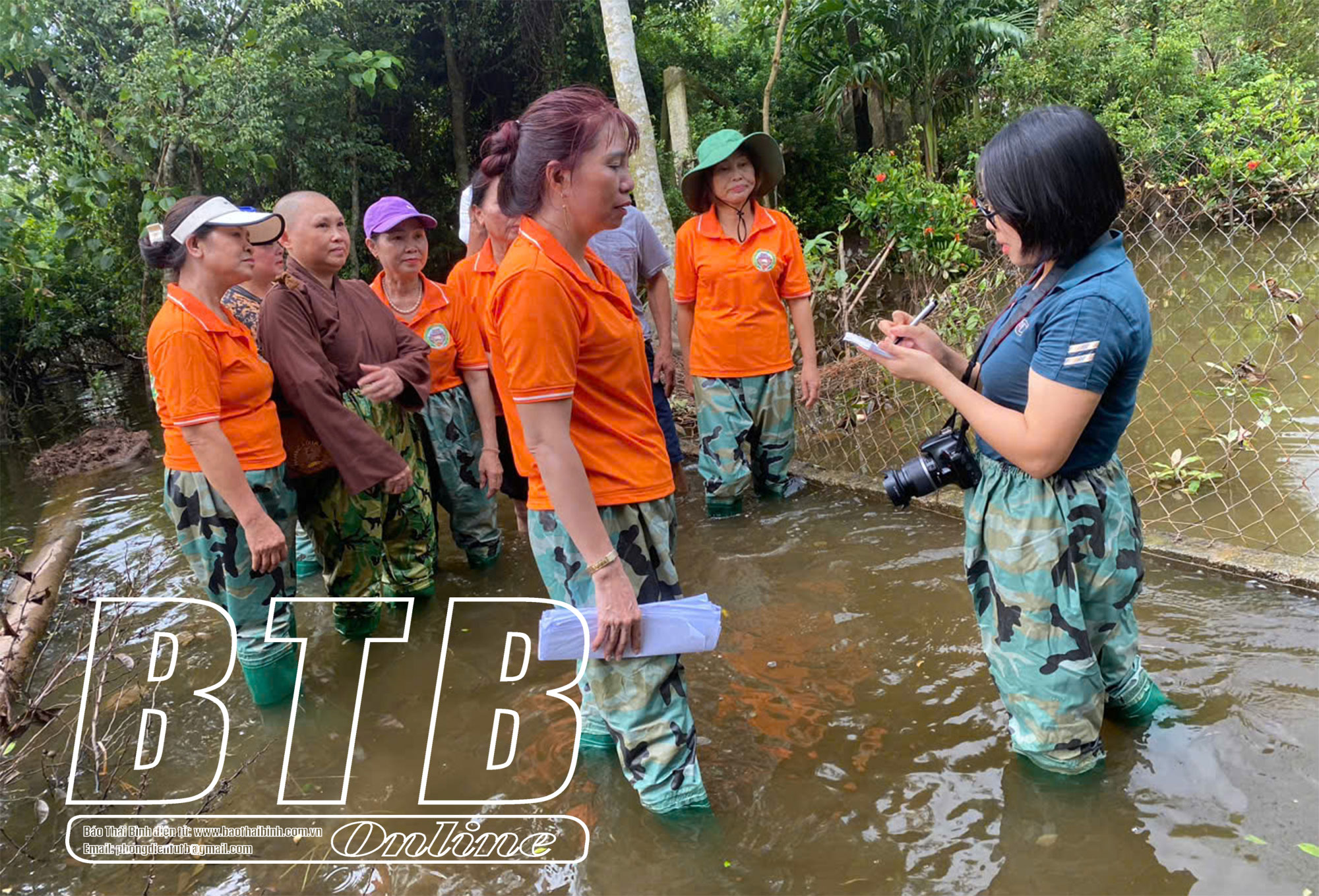 Phóng viên Báo Thái Bình tác nghiệp tại thôn Thuận Nghiệp (xã Bách Thuận) ngày 18/9/2024, khu vực bị ngập sâu sau lũ.Phóng viên tác nghiệp trong bão số 3 năm 2024.