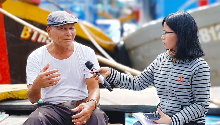 Phóng viên phỏng vấn một ngư dân.