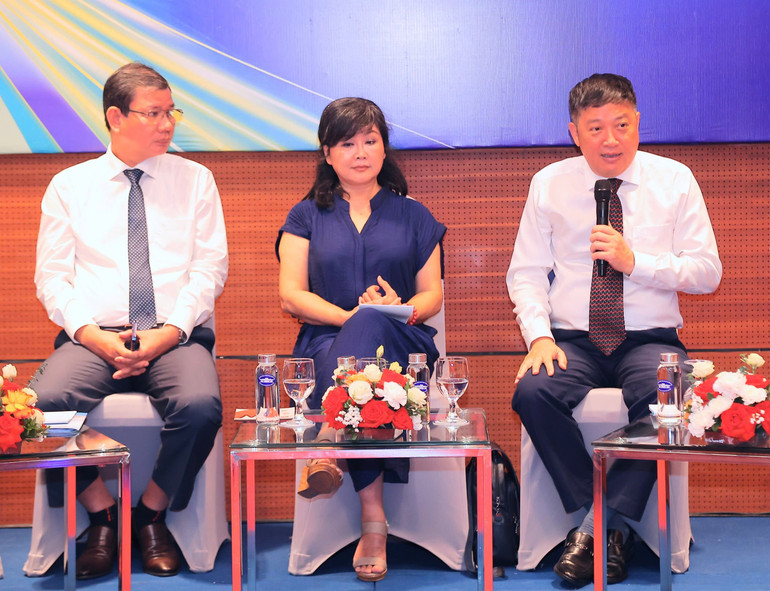 Nhà báo Ngô Thanh, Giám đốc Trung tâm các chương trình giải trí, Đài Phát thanh-Truyền hình Hà Nội trao đổi tại phiên thảo luận.