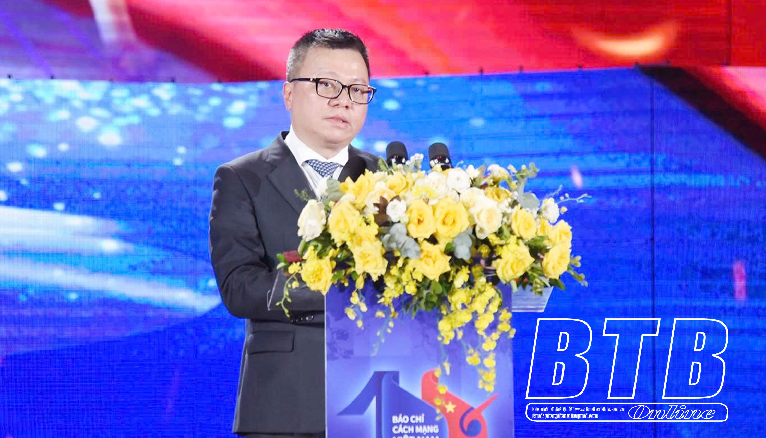 Đồng chí Lê Quốc Minh, Ủy viên Ban Chấp hành Trung ương Đảng, Tổng Biên tập Báo Nhân Dân, Phó Trưởng Ban Tuyên giáo và Dân vận Trung ương, Chủ tịch Hội Nhà báo Việt Nam phát biểu tại buổi lễ.