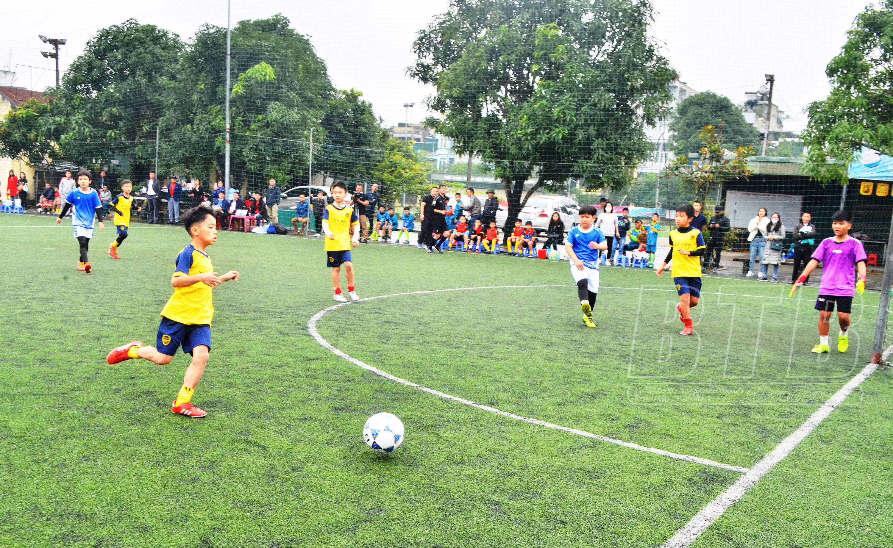 Trận đấu giữa Trường Tiểu học Kim Đồng - Trường Tiểu học Lê Hồng Phong diễn ra sôi nổi.