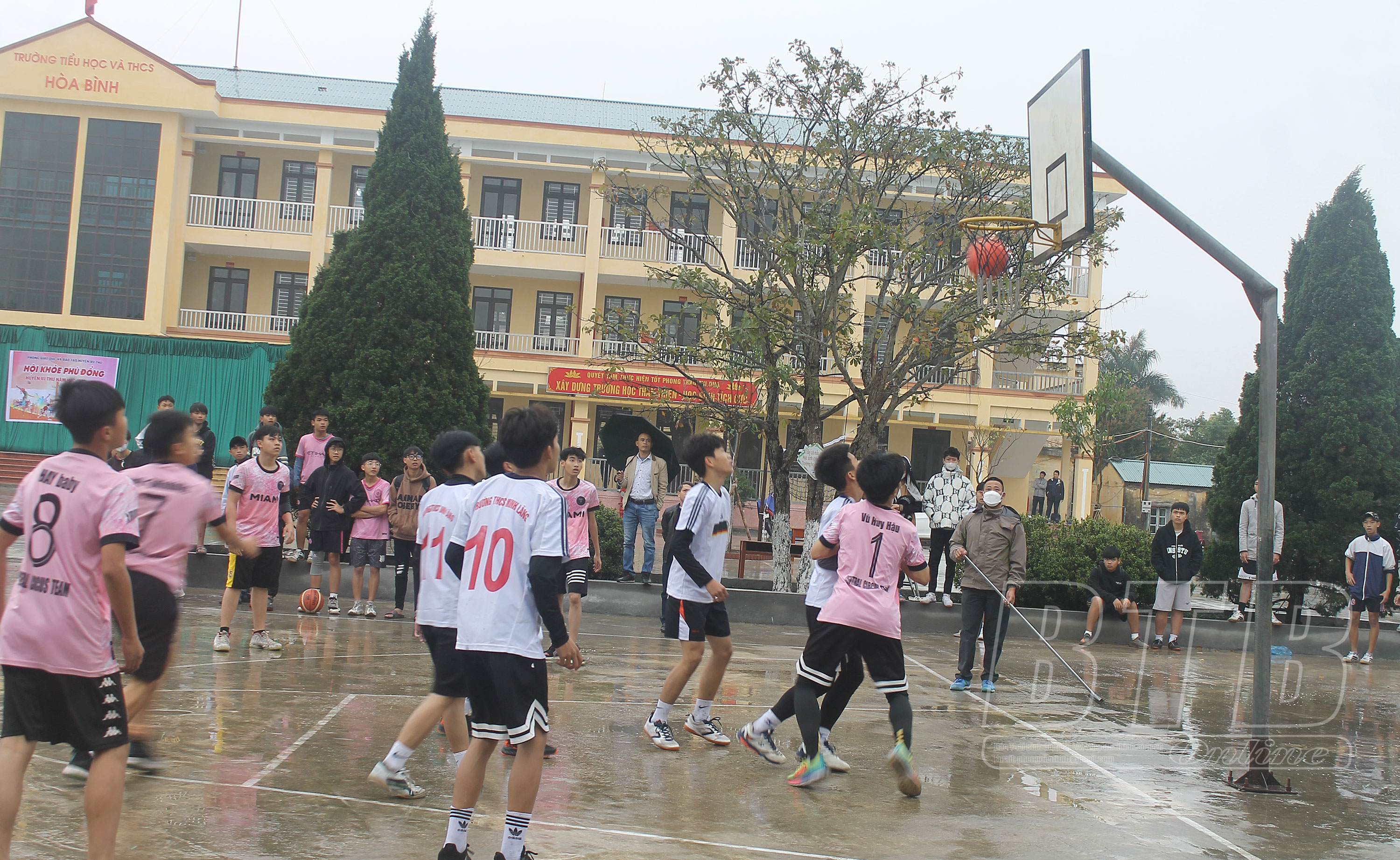 Trận thi đấu bóng rổ giữa Trường THCS Minh Lãng và Tiều học, THCS xã Tự Tân.