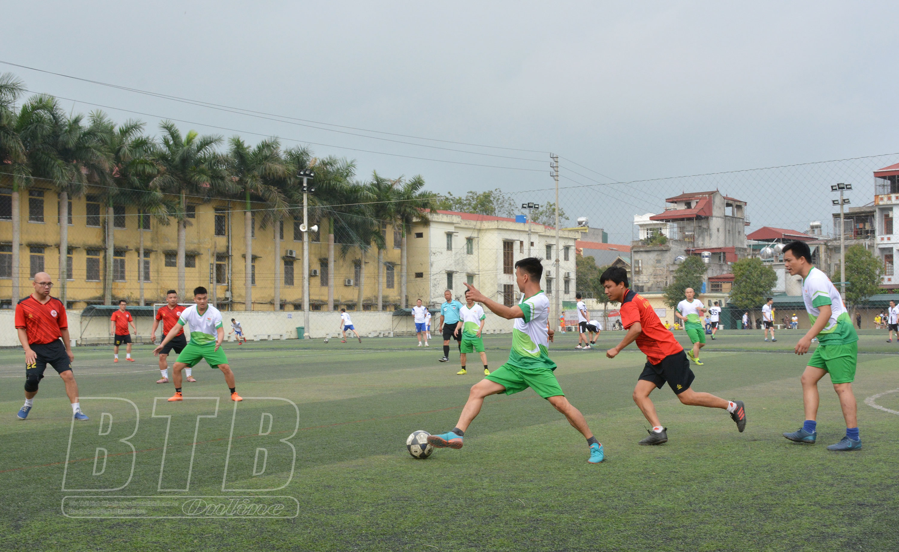 Một pha tranh bóng giữa các cầu thủ Công ty Điện lực Thái Bình và Công ty Cổ phần Tập đoàn ThaiBinh Seed.
