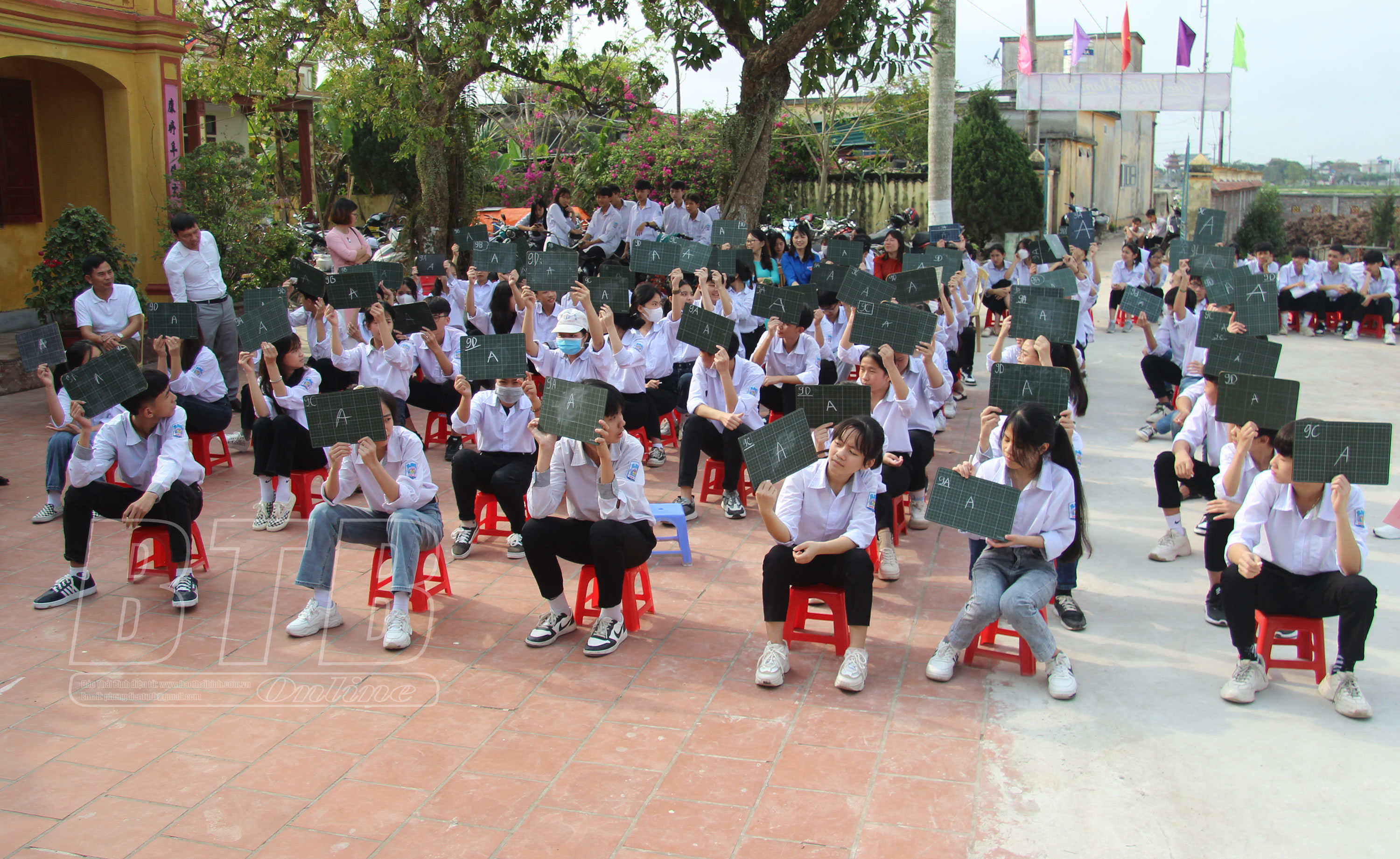 Các em học sinh tham gia hội thi rung chuông vàng tìm hiểu truyền thống 92 năm thành lập Đoàn TNCS Hồ Chí Minh.