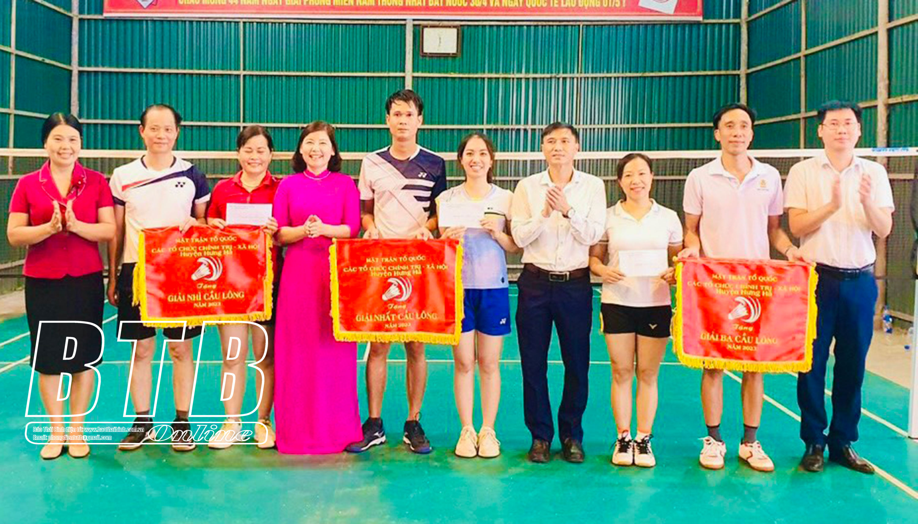 Trao giải nhất, nhì, ba cho các đội môn cầu lông.