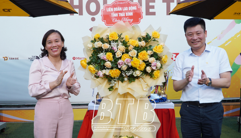 Lãnh đạo Liên đoàn Lao động tỉnh chúc mừng Công ty Tân Đệ tổ chức thành công ngày hội thể thao Tân Đệ năm 2023.