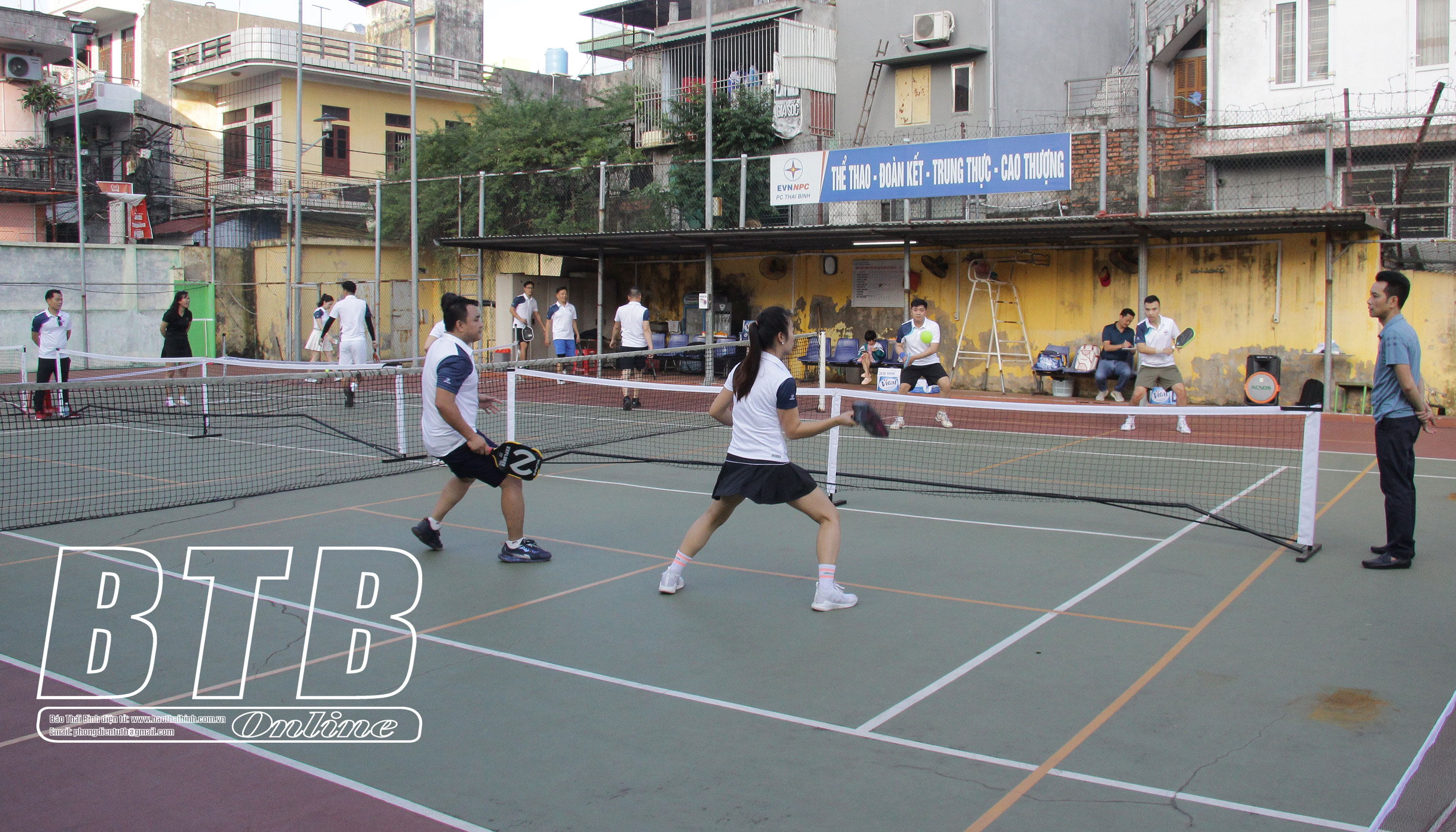 Các vận động viên đến từ các đơn vị của Công ty Điện lực Thái Bình tranh tài các môn kéo co, pickleball.