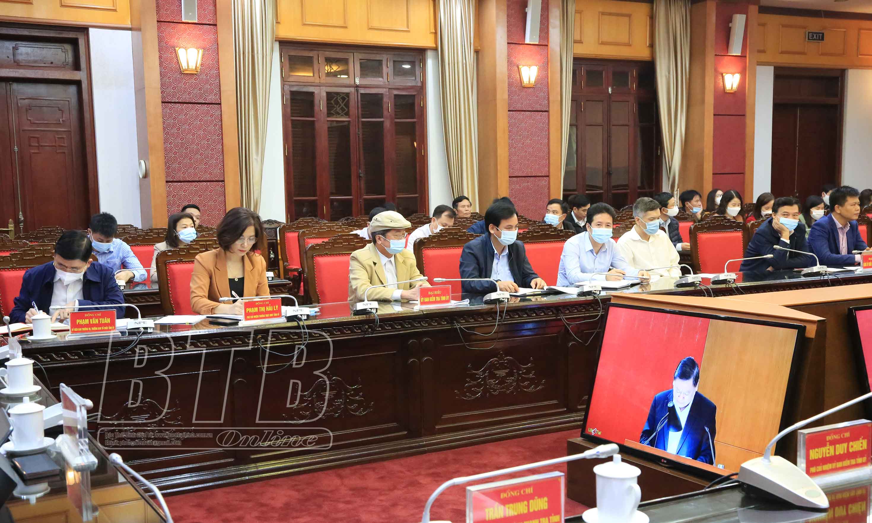 Đồng chí Trần Cẩm Tú, Ủy viên Bộ Chính trị, Bí thư Trung ương Đảng, Chủ nhiệm UBKT Trung ương chủ trì hội nghị. Dự hội nghị tại điểm cầu Thái Bình có các đồng chí: Ngô Đông Hải, Ủy viên Ban Chấp hành Trung ương Đảng, Bí thư Tỉnh ủy; Ngô Thị Kim Hoàn, Ủy viên Ban Thường vụ, Chủ nhiệm UBKT Tỉnh ủy; Phạm Văn Tuân, Ủy viên Ban Thường vụ, Trưởng ban Tổ chức Tỉnh ủy.