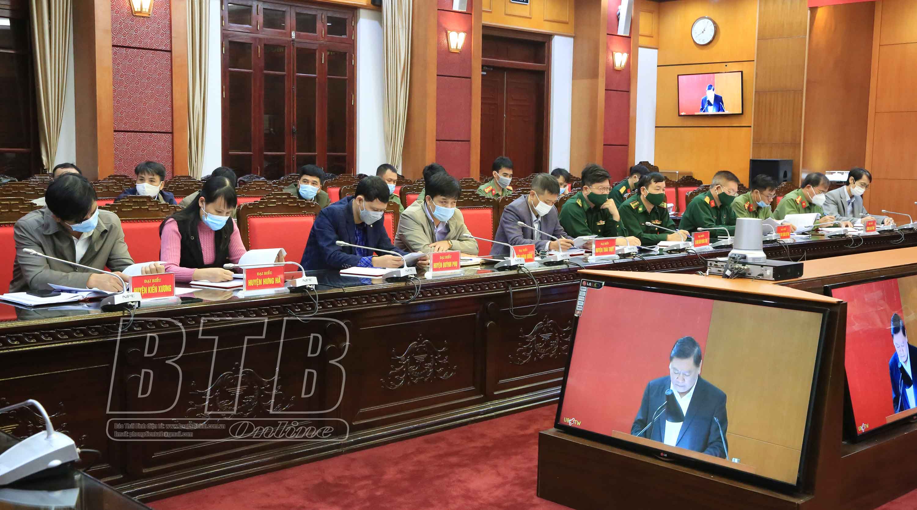 Đại biểu dự hội nghị trực tuyến tại điểm cầu tỉnh Thái Bình.