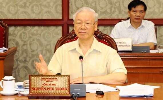 Tổng Bí thư Nguyễn Phú Trọng chủ trì một cuộc họp Bộ Chính trị, Ban Bí thư. (Ảnh: Trí Dũng/TTXVN).