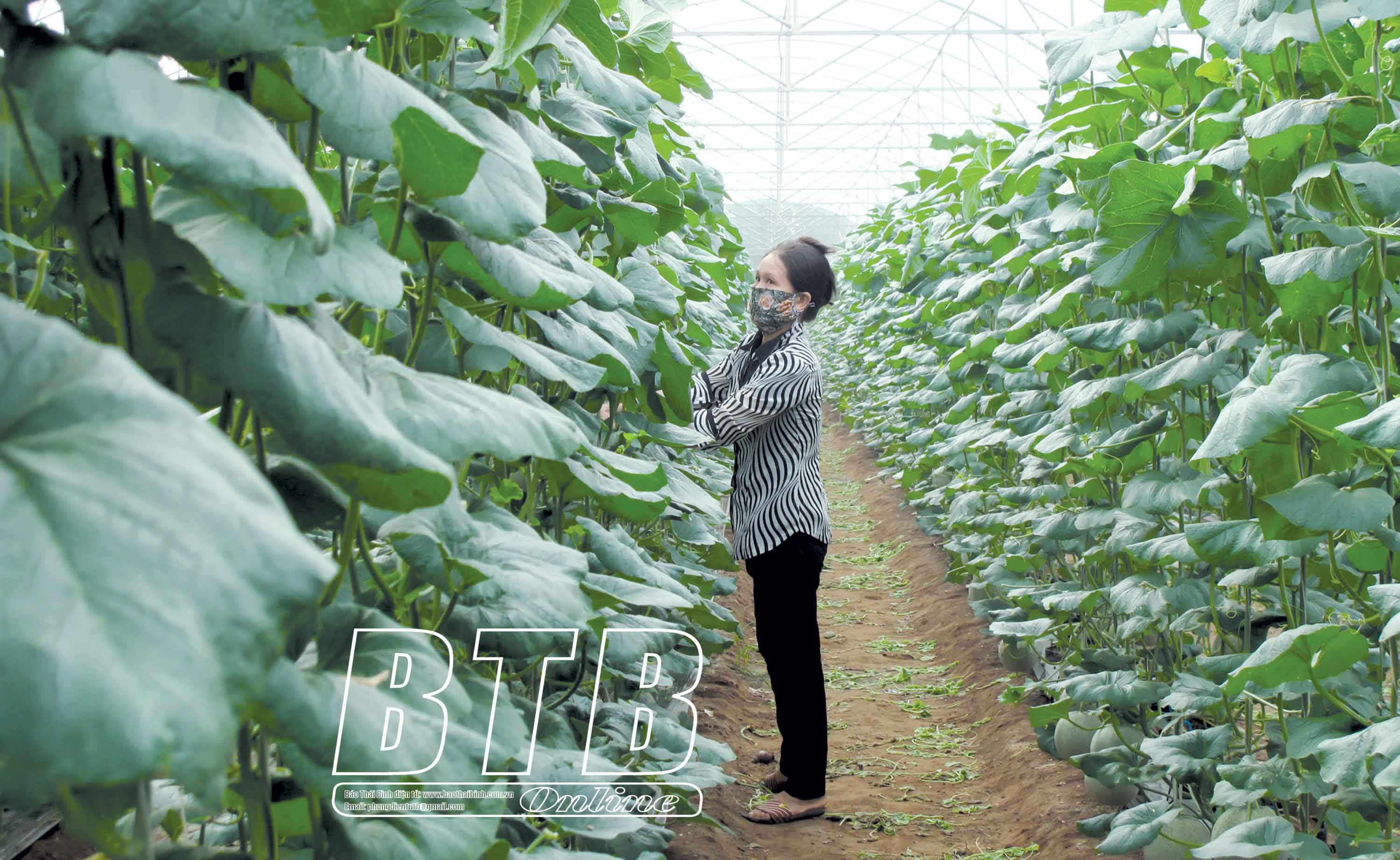 Mô hình trồng dưa lưới theo công nghệ hiện đại ở xã Tiến Đức (Hưng Hà) cho thu nhập hàng trăm triệu đồng mỗi năm.