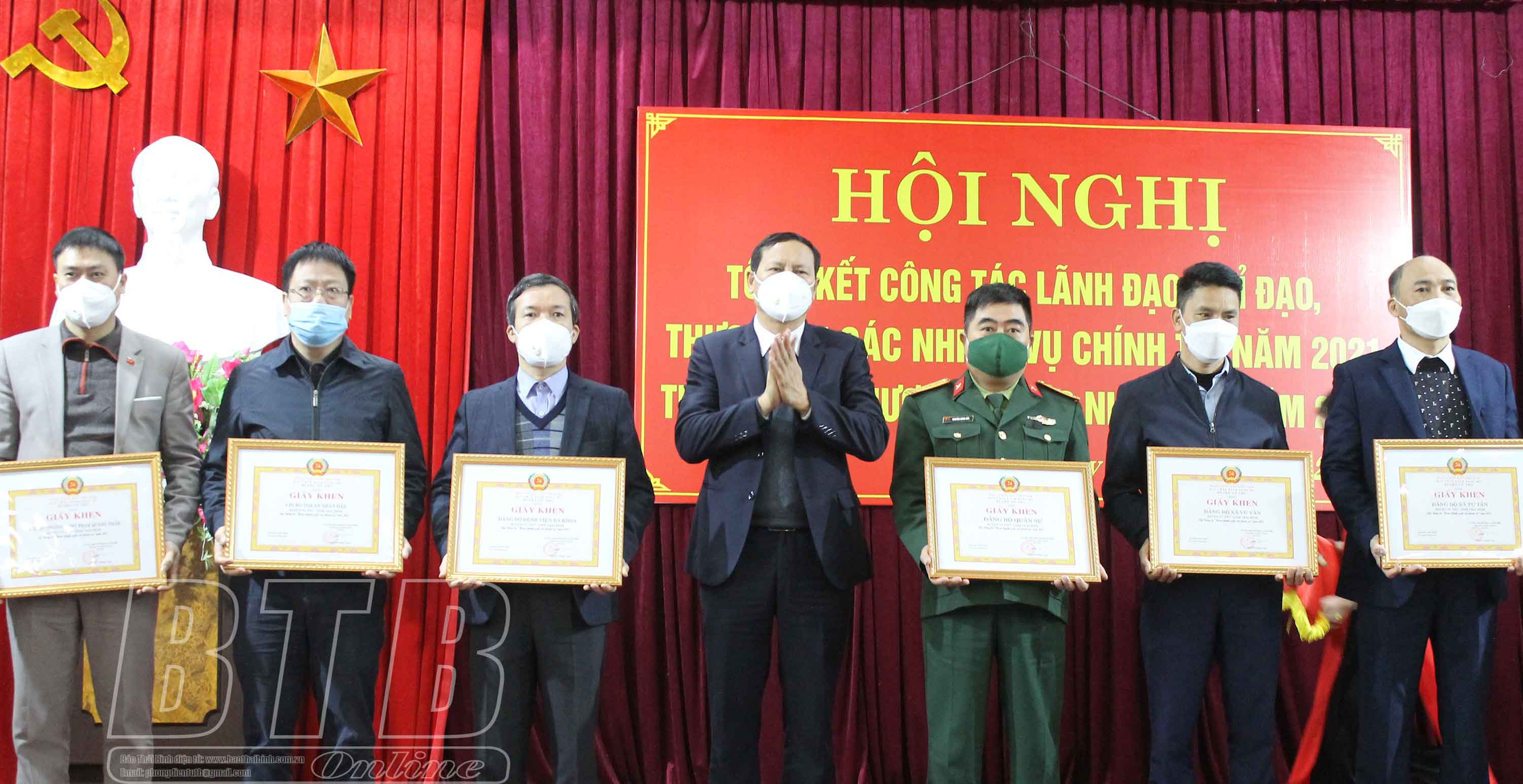 Nhân dịp này, đồng chí Đặng Thanh Giang, Ủy viên Ban Thường vụ Tỉnh ủy, Phó Chủ tịch thường trực HĐND tỉnh trao kỷ niệm chương "Vì sự nghiệp dân vận" của Ban Dân vận Trung ương cho 3 cá nhân; các đồng chí lãnh đạo Huyện ủy Vũ Thư đã trao giấy khen cho 38 tổ chức cơ sở đảng có thành tích tiêu biểu năm 2021.
