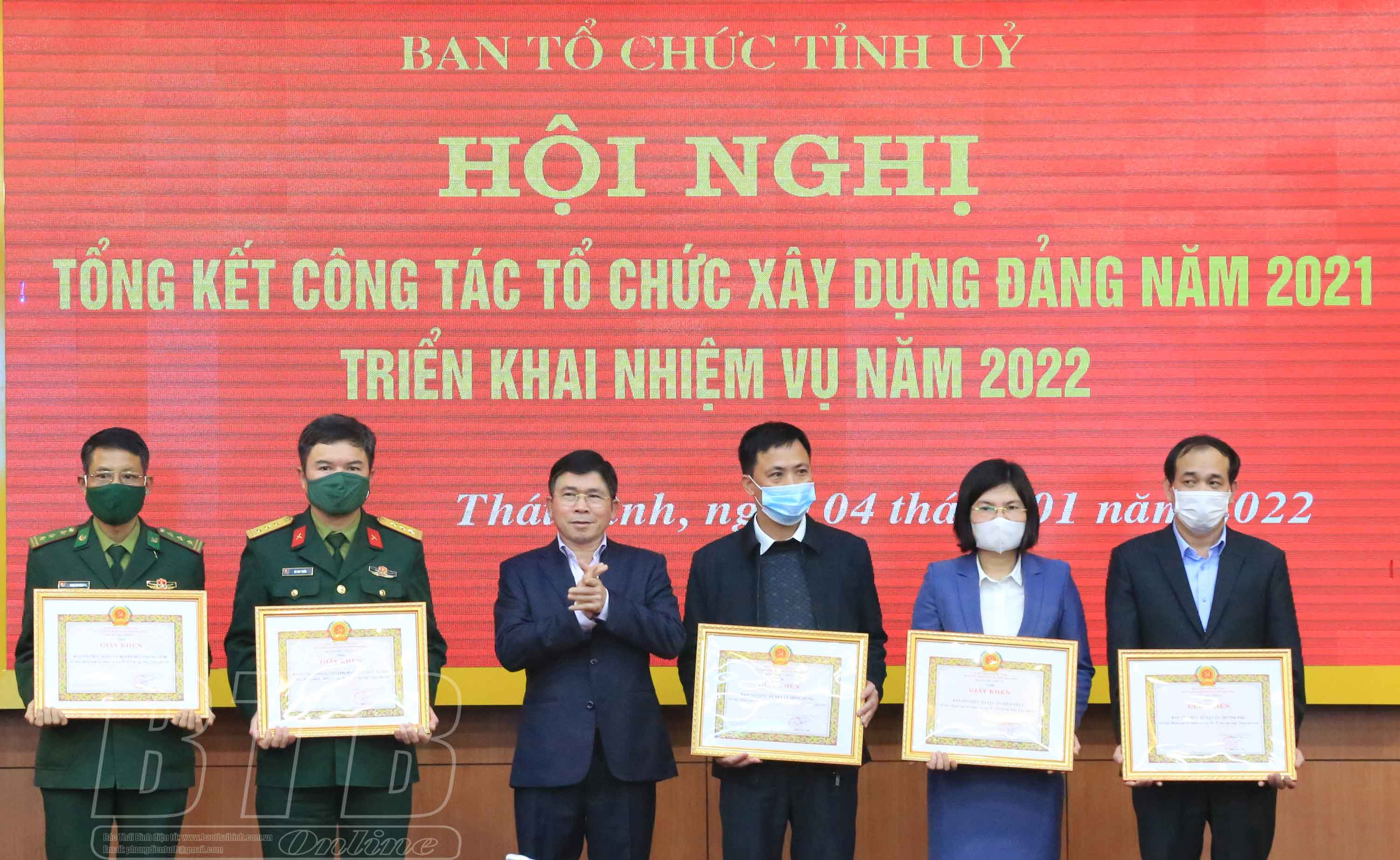 Nhân dịp này, Ban Tổ chức Tỉnh ủy đã tặng giấy khen cho 5 tập thể, 8 cá nhân hoàn thành xuất sắc nhiệm vụ công tác tổ chức xây dựng Đảng năm 2021.