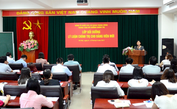 Một lớp bồi dưỡng lý luận chính trị cho đảng viên mới ở Đảng bộ Khối các cơ quan Trung ương. Ảnh: Minh Khuê/dangcongsan.vn