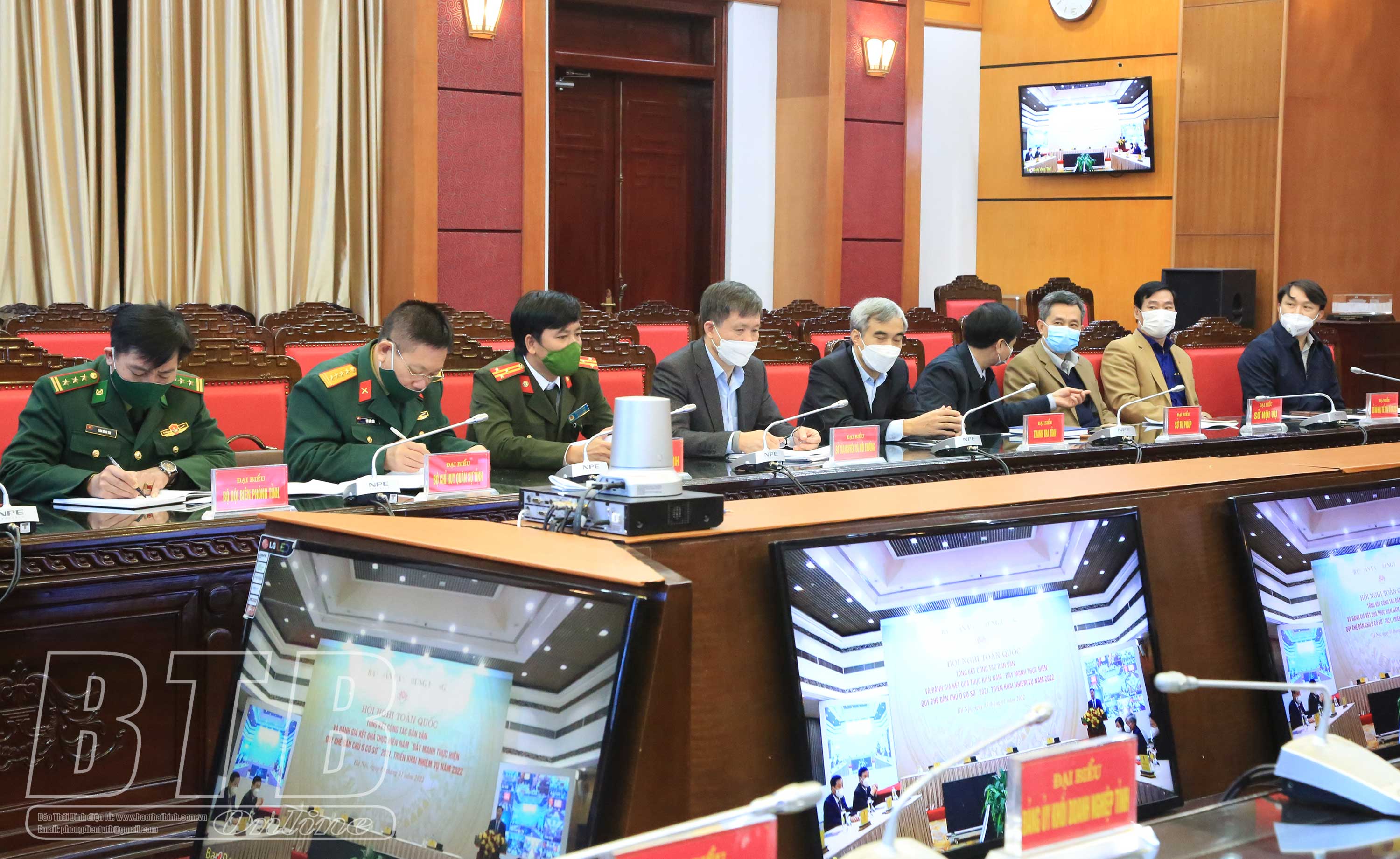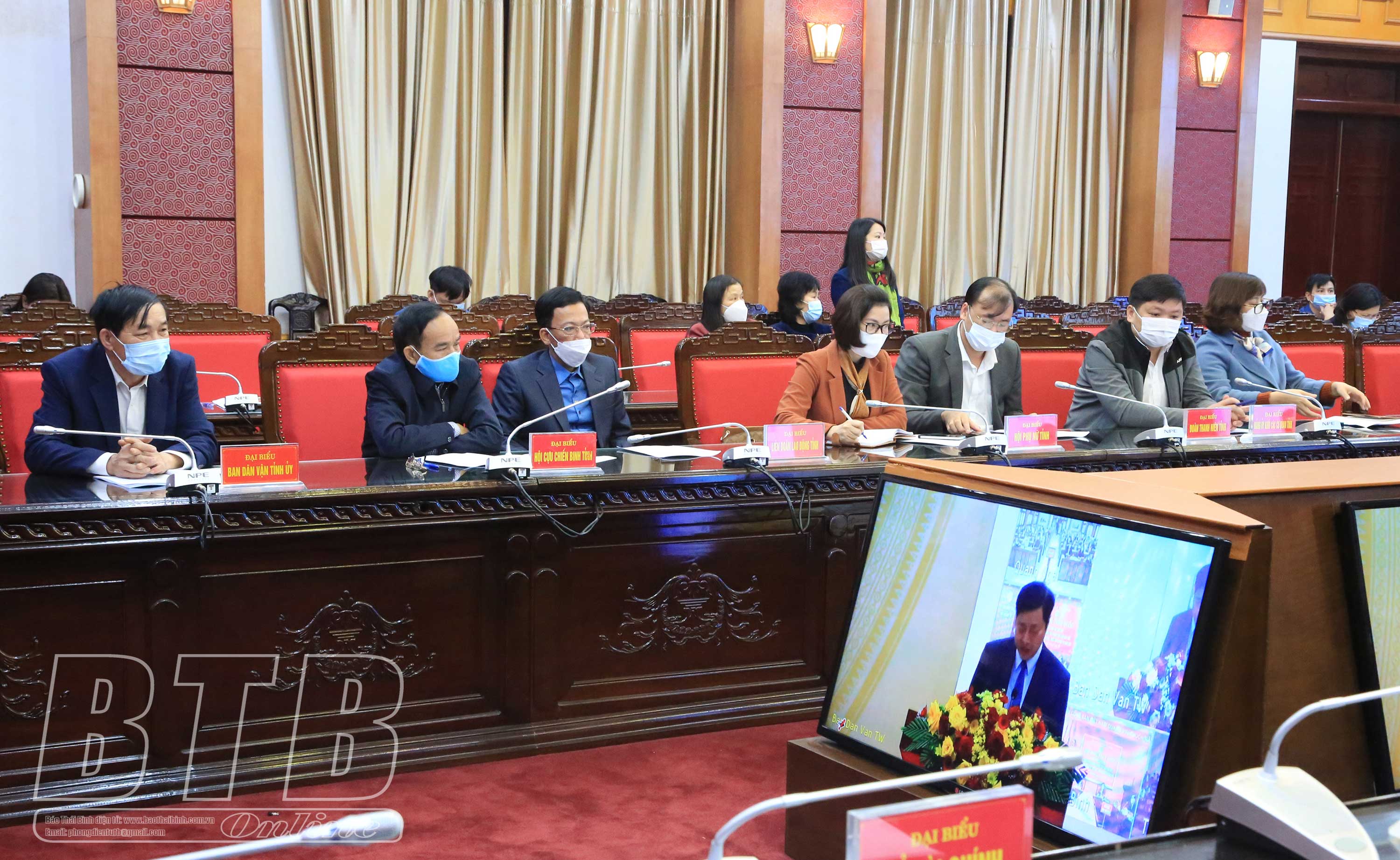 Dự hội nghị tại điểm cầu Thái Bình có các đồng chí: Nguyễn Tiến Thành, Phó Bí thư thường trực Tỉnh ủy, Chủ tịch HĐND tỉnh; Nguyễn Văn Giang, Ủy viên Ban Thường vụ, Trưởng ban Dân vận Tỉnh ủy, Chủ tịch Ủy ban MTTQ tỉnh.