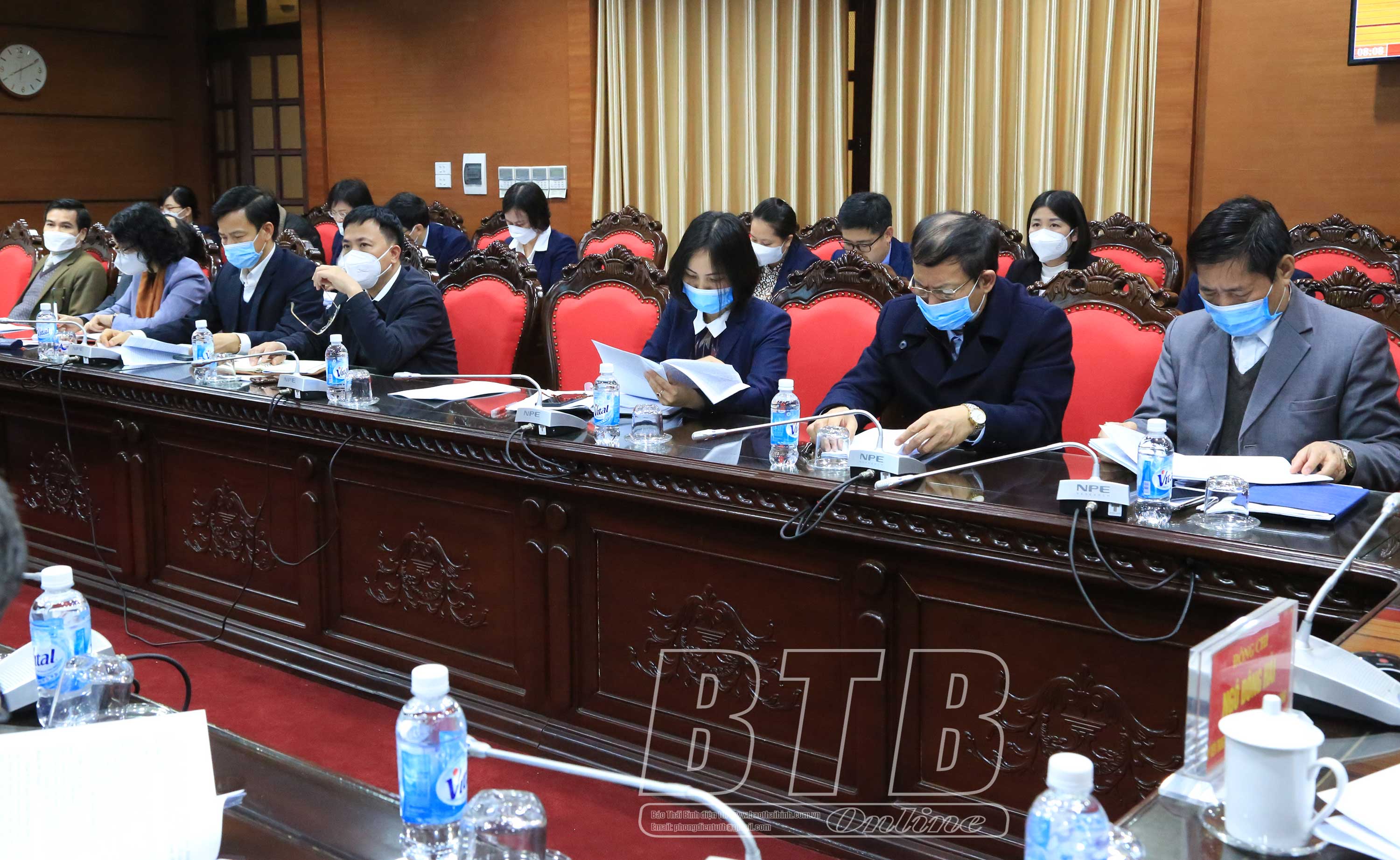 Đại biểu dự hội nghị trực tuyến tại điểm cầu tỉnh Thái Bình.