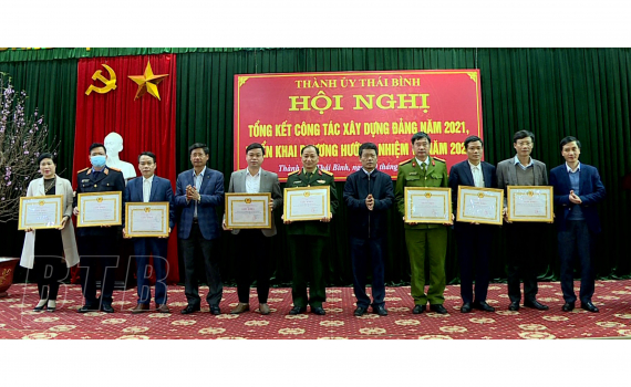Tại hội nghị, Ban Chấp hành Đảng bộ thành phố đã tổ chức khen thưởng 8 tổ chức cơ sở đảng trong sạch, vững mạnh tiêu biểu năm 2021.