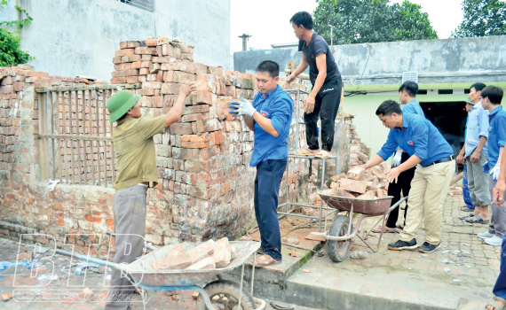 Bên cạnh việc hỗ trợ kinh phí, đoàn viên, thanh niên còn hỗ trợ ngày công dỡ nhà cũ, xây nhà mới cho gia đình học sinh có hoàn cảnh khó khăn của Trường THPT Tiên Hưng. Ảnh tư liệu