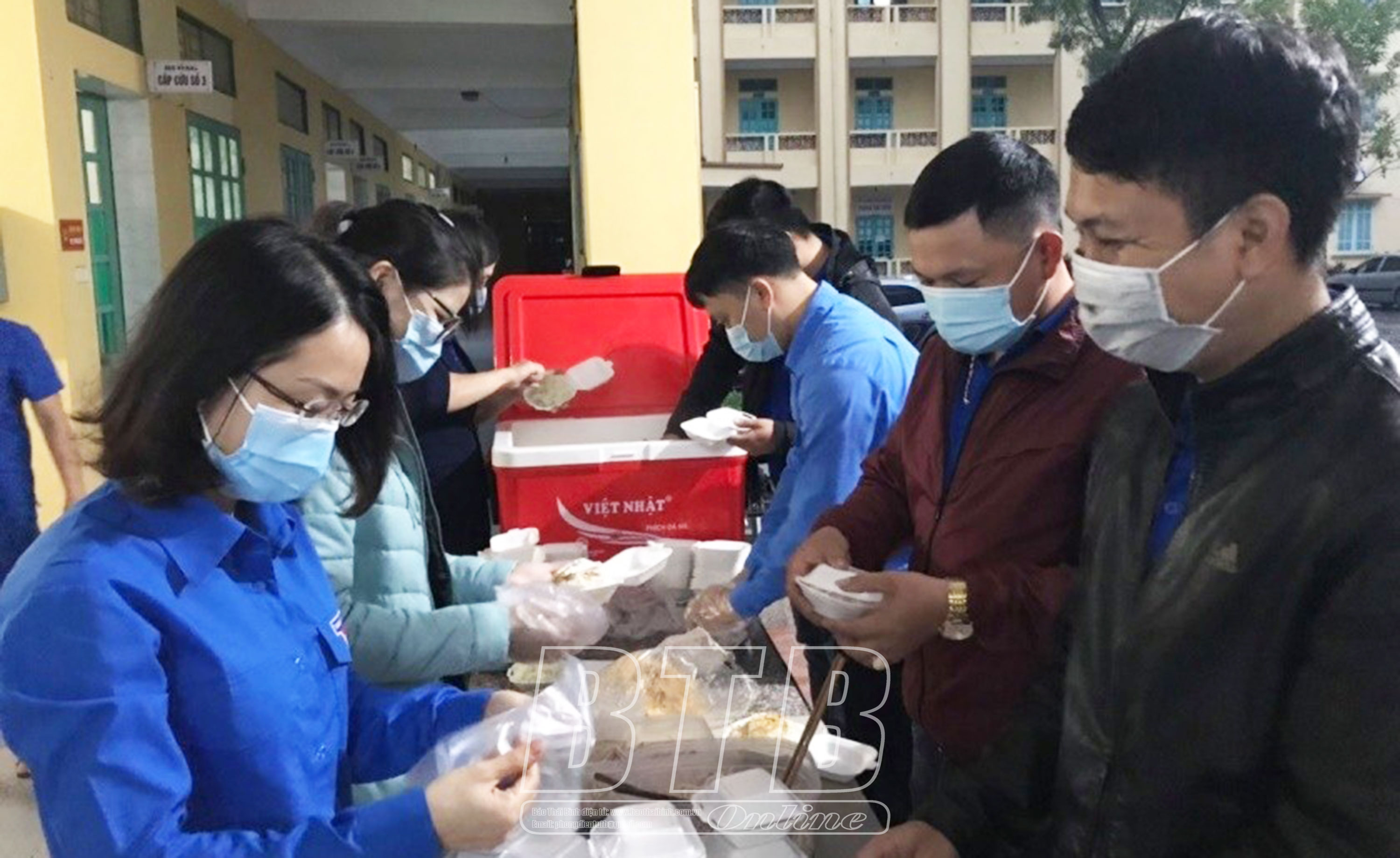 Chị Trần Thị Son, Bí thư Đoàn Thanh niên xã Nam Trung (Tiền Hải) tham gia hoạt động thiện nguyện tại Bệnh viện Đa khoa Nam Tiền Hải.