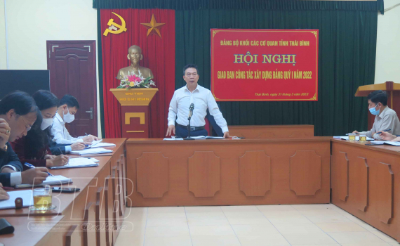 Lãnh đạo Đảng ủy Khối các cơ quan tỉnh phát biểu tại hội nghị.