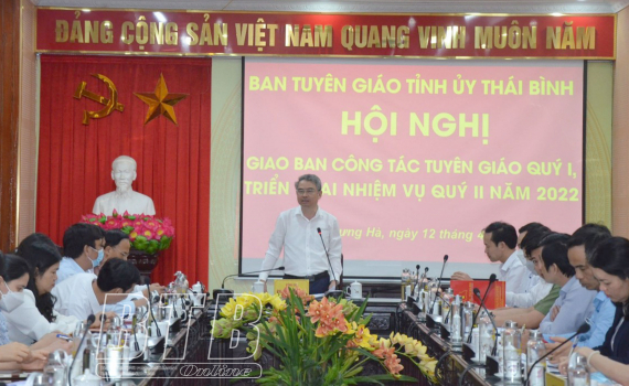 Về nhiệm vụ trọng tâm quý II năm 2022, đồng chí Trưởng ban Tuyên giáo Tỉnh ủy đề nghị toàn ngành tiếp tục tập trung làm tốt công tác tuyên truyền, quán triệt, triển khai các nghị quyết, chỉ thị, kết luận của trung ương, của tỉnh, của huyện, thành phố và các đơn vị; thường xuyên rà soát các chương trình hành động, kịp thời bổ sung, điều chỉnh các nội dung sao cho sát với tình hình thực tế hiện nay. Triển khai thực hiện hiệu quả Quyết định số 238-QĐ/TW ngày 30/9/2020 của Ban Bí thư Trung ương về việc ban hành Quy chế phối hợp giữa ban tuyên giáo các cấp với cơ quan nhà nước cùng cấp trong viêc thực thi pháp luật, triển khai kế hoạch phát triển kinh tế - xã hội, giải quyết các vấn đề nổi cộm, nhân dân quan tâm. Tổ chức tốt hội thi giảng viên lý luận chính trị giỏi năm 2022. Tăng cường nắm tình hình tư tưởng cán bộ, đảng viên và các tầng lớp nhân dân, định hướng thông tin, dư luận xã hội nhất là trước các vụ việc phức tạp, nhạy cảm trong nước, trong tỉnh. Tăng cường đấu tranh, phản bác các luận điệu sai trái, thù địch.