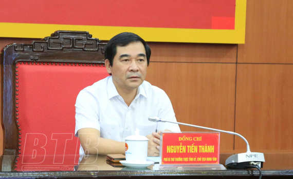 Đồng chí Nguyễn Tiến Thành, Phó Bí thư thường trực Tỉnh ủy, Chủ tịch HĐND tỉnh dự hội nghị tại điểm cầu Thái Bình.