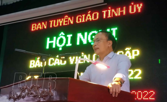 Lãnh đạo Ban Tuyên giáo Tỉnh ủy thông tin tại hội nghị.