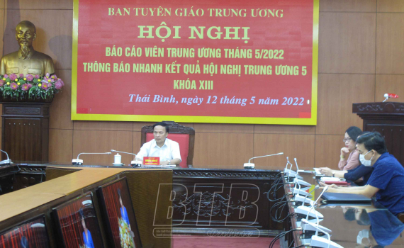 Tại hội nghị, các đại biểu đã nghe đồng chí Phó Trưởng ban thường trực Ban Tuyên giáo Trung ương thông báo nhanh kết quả Hội nghị Trung ương 5 (khóa XIII). Theo đó, tại Hội nghị lần thứ 5 diễn ra từ ngày 4/5 đến ngày 10/5/2022. Sau khi xem xét, thảo luận các tờ trình, đề án và báo cáo của Bộ Chính trị, Ban Chấp hành Trung ương Đảng đã quyết nghị thông qua nội dung các văn kiện: Nghị quyết về “Tiếp tục đổi mới, hoàn thiện thể chế, chính sách; nâng cao hiệu lực, hiệu quả quản lý và sử dụng đất; tạo động lực đưa nước ta trở thành nước phát triển có thu nhập cao”; Nghị quyết về “Nông nghiệp, nông dân, nông thôn đến năm 2030, tầm nhìn đến năm 2045”; Nghị quyết về “Tiếp tục đổi mới, phát triển và nâng cao hiệu quả kinh tế tập thể trong giai đoạn mới”; Nghị quyết về “Tăng cường củng cố, xây dựng tổ chức cơ sở đảng và nâng cao chất lượng đội ngũ đảng viên trong tình hình mới”. Ban Chấp hành Trung ương Đảng kêu gọi toàn Đảng, toàn dân và toàn quân tăng cường đoàn kết, thống nhất, phát huy những kết quả đã đạt được, nỗ lực phấn đấu, vượt qua mọi khó khăn, thách thức, bảo vệ vững chắc độc lập, chủ quyền lãnh thổ và an ninh quốc gia, hoàn thành thắng lợi các mục tiêu đã đề ra cho năm 2022 và các năm tiếp theo; tổ chức thực hiện các nghị quyết của Hội nghị Ban Chấp hành Trung ương Đảng lần thứ 5, góp phần thực hiện thắng lợi Nghị quyết Đại hội XIII của Đảng.