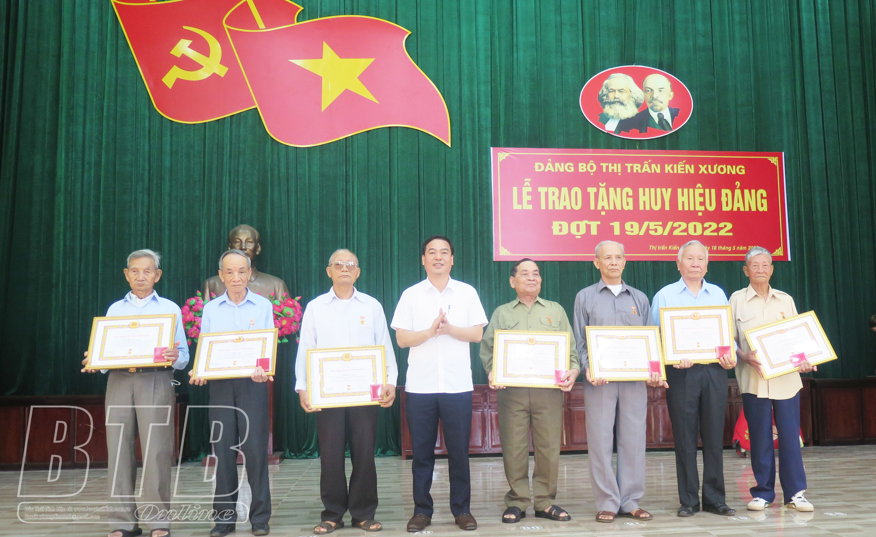 Lãnh đạo huyện Kiến Xương trao Huy hiệu Đảng cho các đảng viên tại thị trấn Kiến Xương.