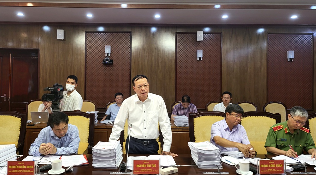 Đồng chí Nguyễn Trí Tuệ, Phó Chánh án Thường trực Tòa án nhân dân tối cao, Phó Trưởng đoàn kiểm tra phát biểu tại buổi làm việc với Ban Thường vụ Tỉnh ủy Quảng Ninh.