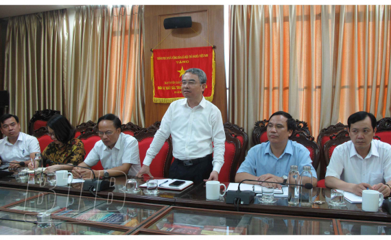Đồng chí Nguyễn Tri Thức, Ủy viên Ban Biên tập, Trưởng ban Chuyên đề và Chuyên san, Tạp chí Cộng sản phát biểu tại buổi làm việc.