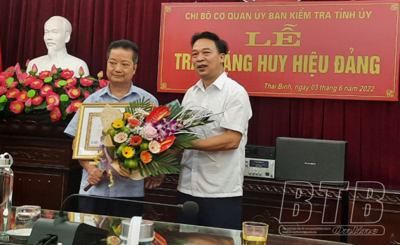 Lãnh đạo Đảng ủy Khối các cơ quan tỉnh trao tặng Huy hiệu Đảng cho đảng viên.