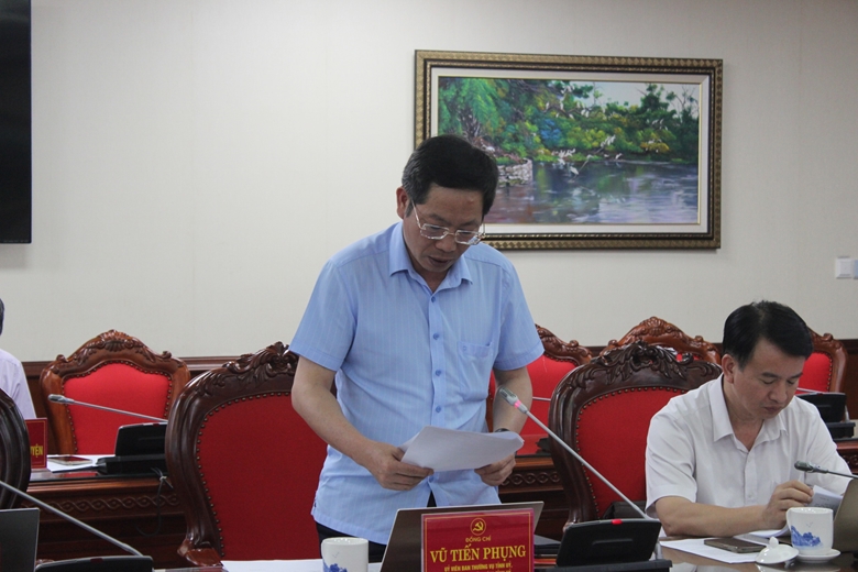 Trưởng Ban Nội chính Tỉnh ủy Vũ Tiến Phụng báo cáo dự thảo quyết định thành lập Ban Chỉ đạo phòng, chống tham nhũng, tiêu cực tỉnh