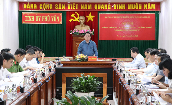 Đoàn kiểm tra số 7 Ban Chỉ đạo Trung ương về phòng, chống tham nhũng, tiêu cực làm việc với Ban Thường vu Tỉnh ủy Phú Yên. (Ảnh: Văn Cường)