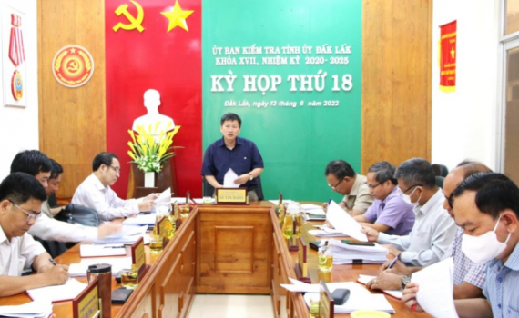 Một phiên họp xem xét kỷ luật đảng viên vi phạm của Ủy ban Kiểm tra Tỉnh ủy Đắk Lắk trong tháng 6/2022.