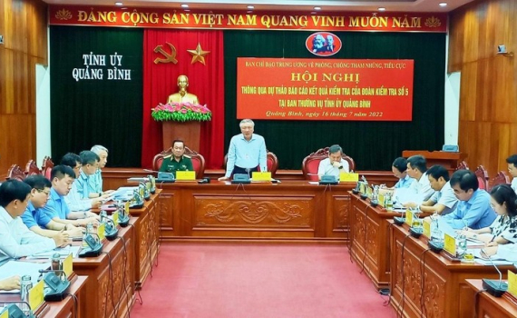 Tại hội nghị, Đoàn kiểm tra số 5 đã báo cáo quá trình kiểm tra tại tỉnh Quảng Bình. Theo đó, từ 16/5 đến 21/5, Đoàn đã kiểm tra tại 13 cơ quan, đơn vị của tỉnh Quảng Bình với tinh thần khẩn trương, khách quan, công tâm, trách nhiệm.