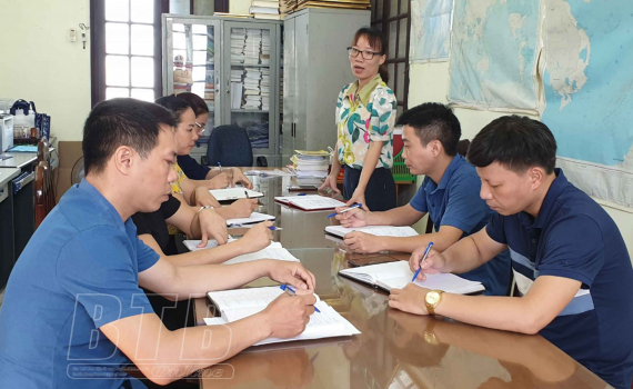 Chi bộ Ban Tuyên giáo Huyện ủy - Trung tâm Chính trị huyện Quỳnh Phụ triển khai nội dung xây dựng mô hình chi bộ kiểu mẫu.