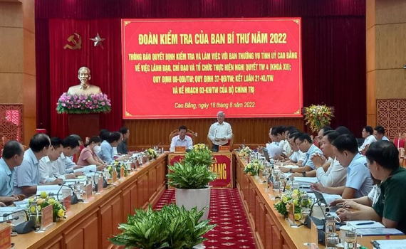 Đoàn kiểm tra của Ban Bí thư làm việc với Ban Thường vụ Tỉnh ủy Cao Bằng