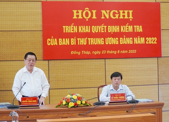 Ngày 23/8, tại hội trường Tỉnh ủy Đồng Tháp, Đoàn Kiểm tra của Ban Bí thư Trung ương Đảng do đồng chí Nguyễn Trọng Nghĩa - Bí thư Trung ương Đảng, Trưởng Ban Tuyên giáo Trung ương làm Trưởng đoàn có buổi làm việc với Ban Thường vụ (BTV) Tỉnh ủy Đồng Tháp để công bố quyết định, kế hoạch kiểm tra của Đoàn kiểm tra.