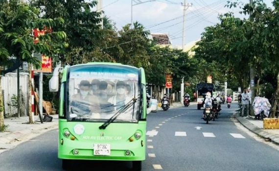 Xe điện phục vụ du khách tại thành phố Hội An.