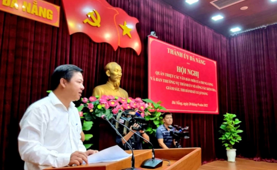 Đồng chí Lương Nguyễn Minh Triết, Uỷ viên dự khuyết Trung ương Đảng, Phó Bí thư Thường trực Thành uỷ Đà Nẵng quán triệt các văn bản mới có liên quan tại Hội nghị