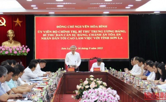 Ngày 26/9, đồng chí Nguyễn Hòa Bình, Ủy viên Bộ Chính trị, Bí thư Trung ương Đảng, Chánh án Tòa án nhân dân tối cao cùng đoàn công tác đã làm việc với Ban Thường vụ Tỉnh ủy Sơn La về công tác phòng, chống tham nhũng, tiêu cực và hoạt động của các cơ quan bảo vệ pháp luật tại Sơn La.