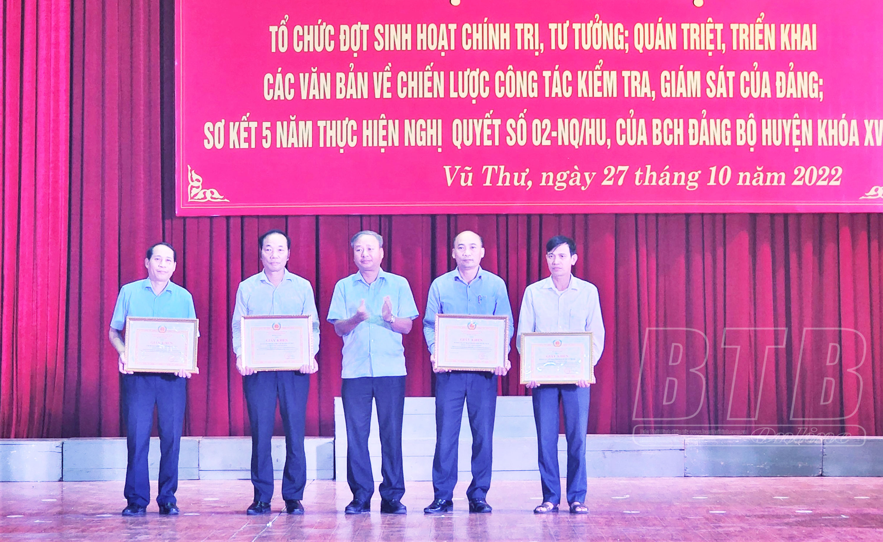 Cũng tại hội nghị, Huyện ủy Vũ Thư tổ chức sơ kết và biểu dương, khen thưởng 24 tập thể, cá nhân có thành tích xuất sắc trong 5 năm thực hiện Nghị quyết số 02-NQ/HU, ngày 11/7/2017 của Ban Chấp hành Đảng bộ huyện khóa XV về việc “Chấn chỉnh nền nếp, kỷ cương, tác phong làm việc của đội ngũ cán bộ, công chức, viên chức; cán bộ chiến sĩ lực lượng vũ trang trên địa bàn huyện”.