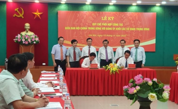 Ban Nội chính Trung ương và Đảng ủy Khối các cơ quan Trung ương tổ chức ký Quy chế phối hợp công tác.