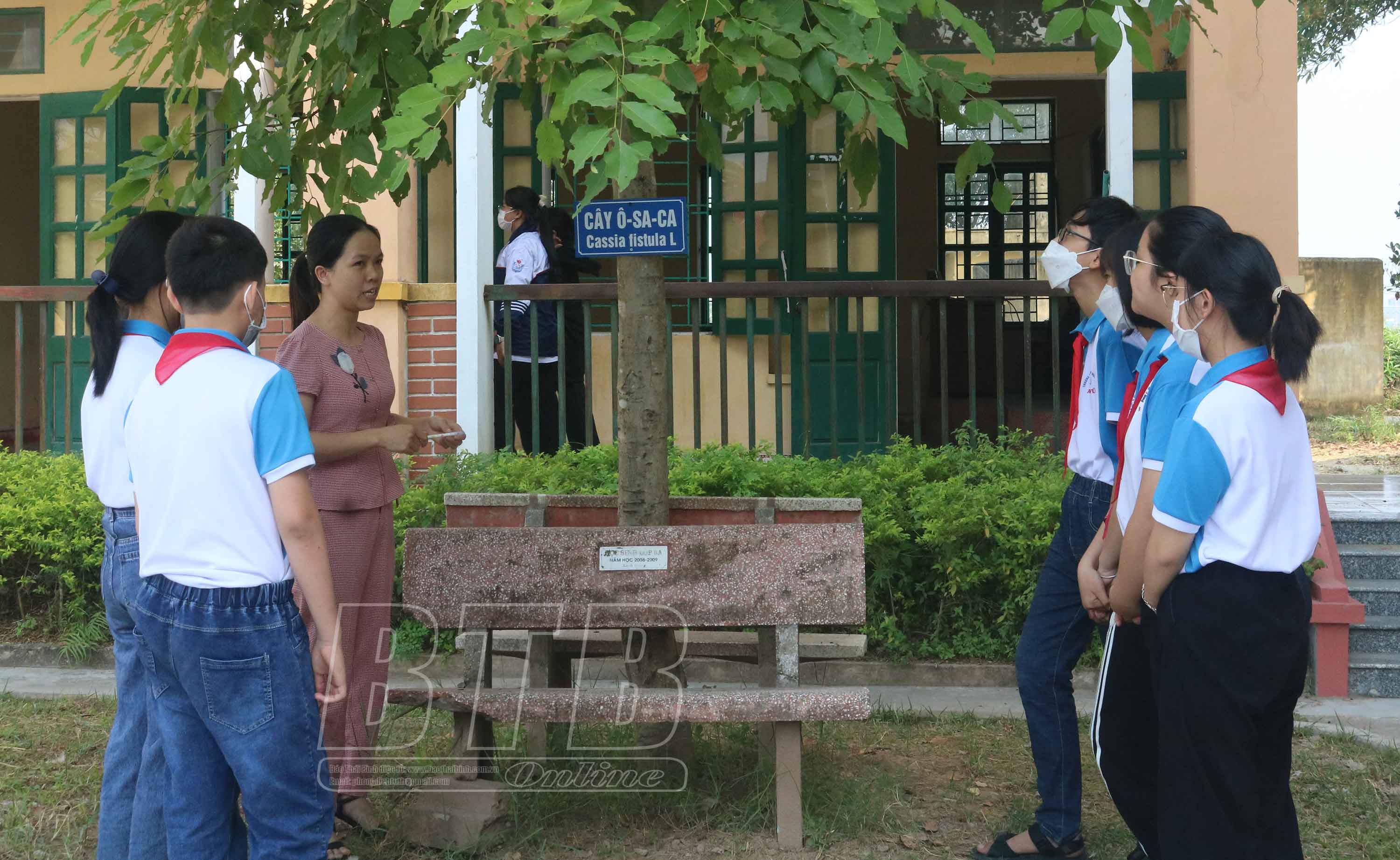 Em Nguyễn Thành Anh, học sinh lớp 9A cho biết: Cây xanh trồng trong khuôn viên của trường rất đa dạng, mỗi cây đều được gắn biển tên tiếng Việt và tiếng Anh để chúng em nắm bắt và tìm hiểu tập tính, khả năng thích nghi, quá trình sinh trưởng, ý nghĩa, công dụng của từng loài cây để nâng cao vốn hiểu biết của bản thân. Khu vực trồng các loại cây cũng là nơi các thầy cô giáo tổ chức cho chúng em học tập, trải nghiệm như môn học mỹ thuật, học sinh có thể ra ngoài vườn trường để vẽ lá, hoa, quả hoặc sau tiết học công nghệ, học sinh có thể ra vườn thực nghiệm. Tại đây, chúng em được trải nghiệm, nâng cao hiểu biết về đất trồng, kỹ thuật trồng, được thực hành để hiểu hơn bài học, có vốn sống thực tiễn.